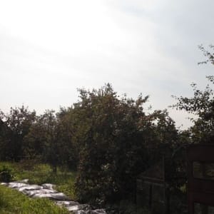 Межевание, вода, плодовые дереья, малина, йошта, теплица, сарай, туалет.